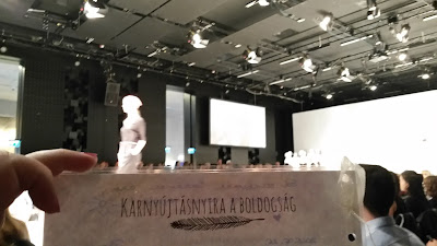 Egyedül mentem, de nagyon örültem volna, ha Fanni is jön, mert tudom, hogy néhány furcsa dolog láttán jókat nevettünk volna, kielemeztük volna a show-kat és az embereket is. Arra gondoltam, hogy magammal viszem a tőle kapott könyvjelzőmet, amire rá van írva, hogy “Karnyújtásnyira a boldogság – fannigardrobja.blogspot.hu”. Ezt a könyvjelzőt kineveztem Fanninak, így készítettem egy csomó közös képet vele, ahogyan a tükör előtt készülődtünk, az alsó rakparton a Parlamentnél, és a Lánchídnál sétáltunk, és szépen lassan megérkeztünk a Várkert Bazárhoz is: